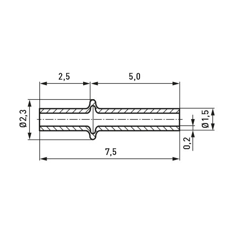 Bundhülse ø1,5/2,3x2,5/5,0mm Messing verzinnt 0,2mm