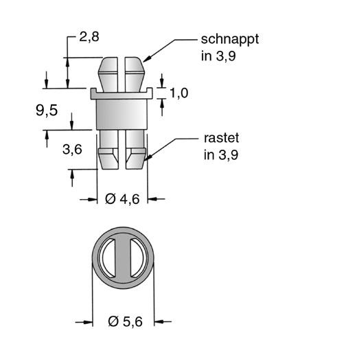 Distanzhalter 9,5 | ø3,9 | ø3,9 PA6.6 natur