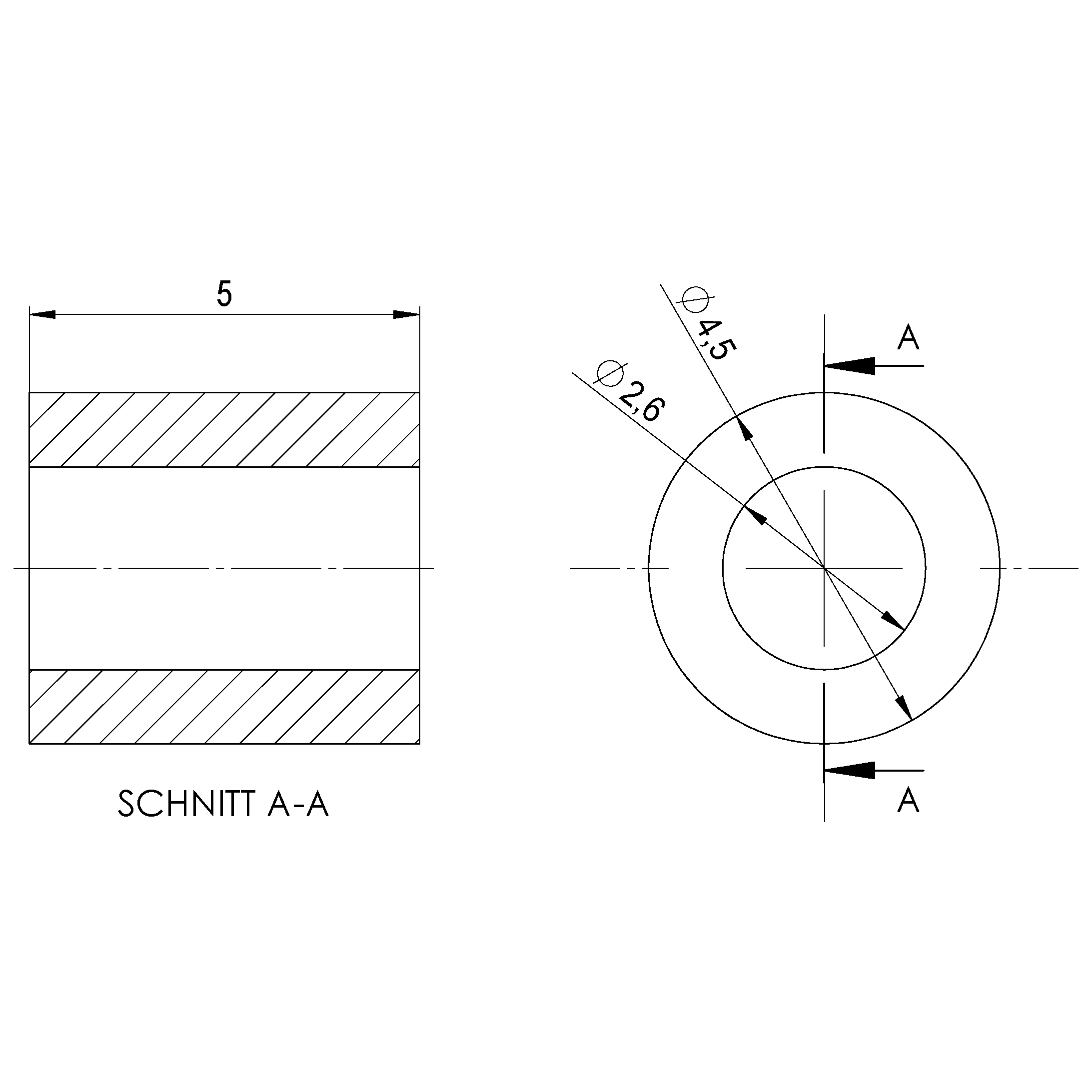 Distanzhülse Ø2,6/4,5 x 5,0 Aluminium blank