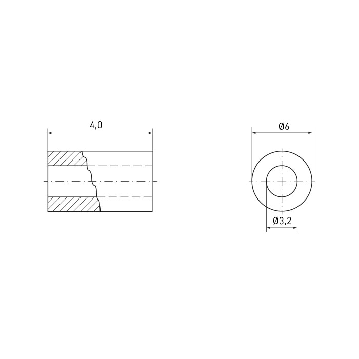 Distanzhülse Ø3,2/6,0 x 4,0 Messing vernickelt