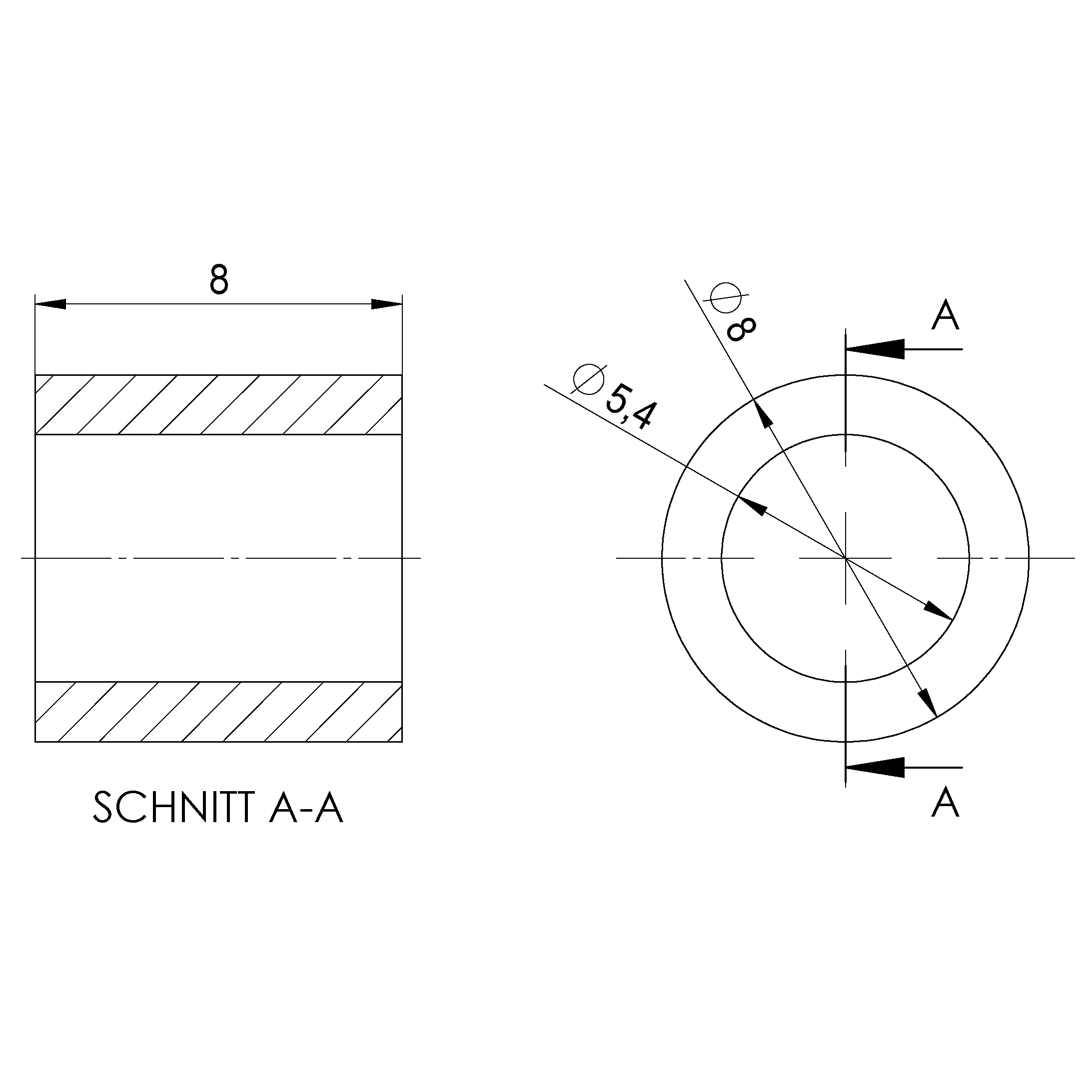 Distanzhülse Ø5,4/8,0 x 8,0 Stahl rostfrei blank