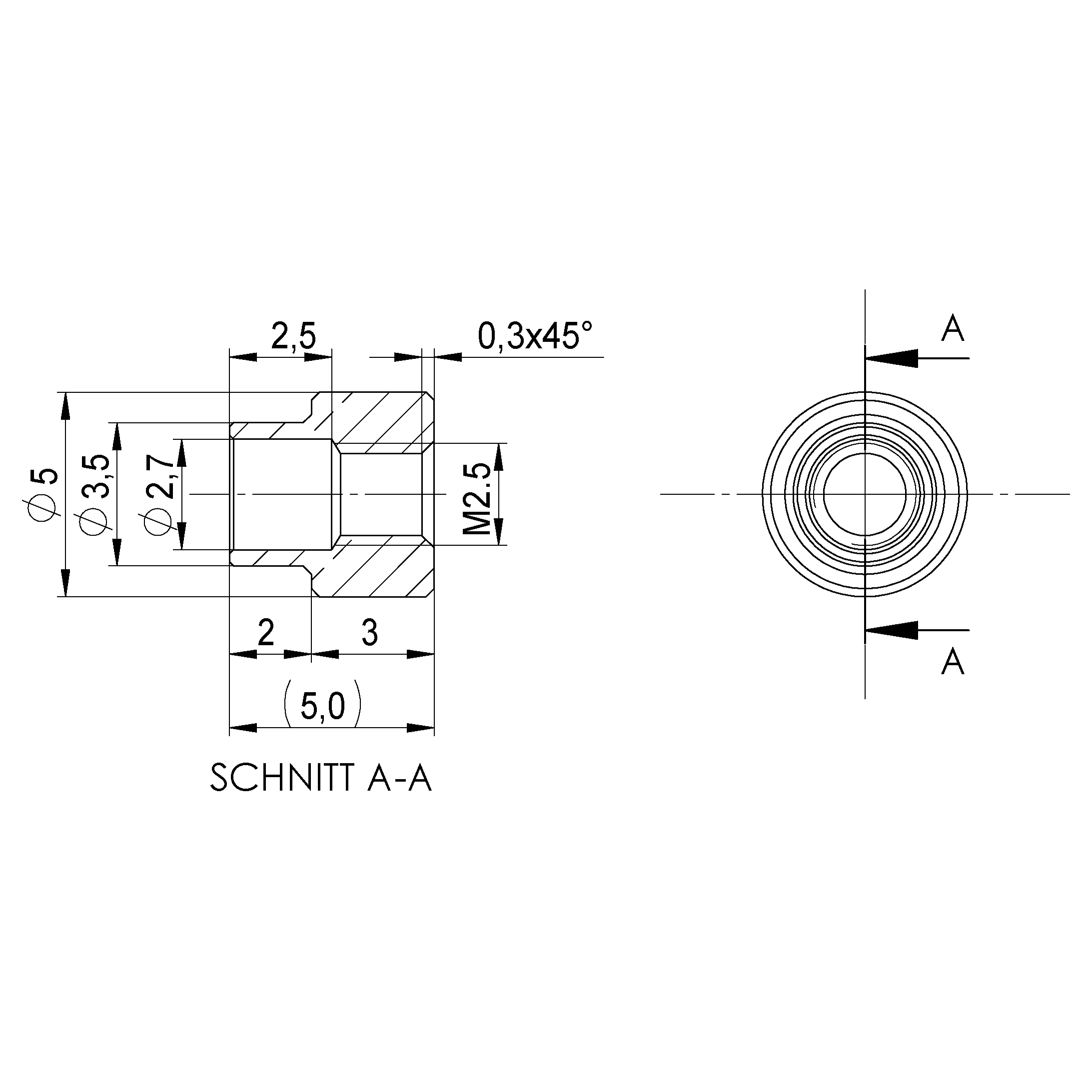 Einnietmutter M2,5x3,0 | 2,0 Messing vernickelt