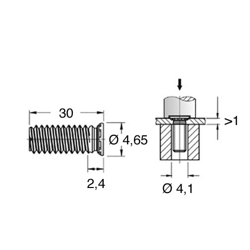 Einpressbolzen M4x30,0 Stahl rostfrei A2 passiviert