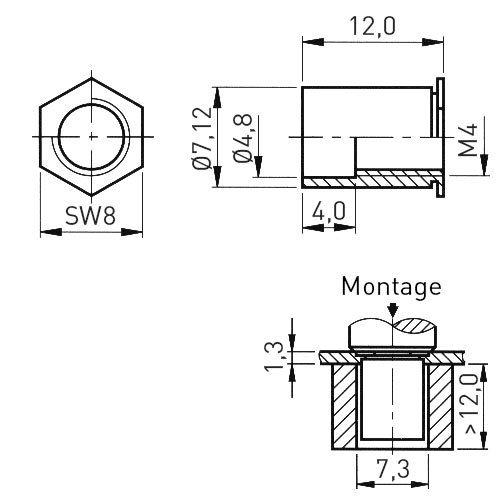 Einpressbuchse M4x12,0 Stahl verzinkt