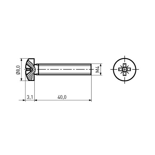Flachkopfschraube ISO14583 M4x40 Stahl 4.8 schwarz Torx Linsenkopf