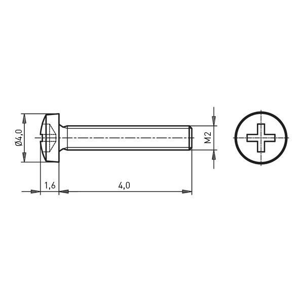 Flachkopfschraube ISO7045 M2x4 Stahl 4.8 verzinkt Pozidriv Linsenkopf