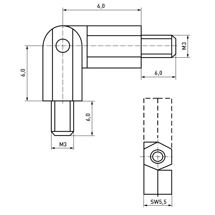 Gelenkbolzen - mittelschwer drehbar - SW 5,5