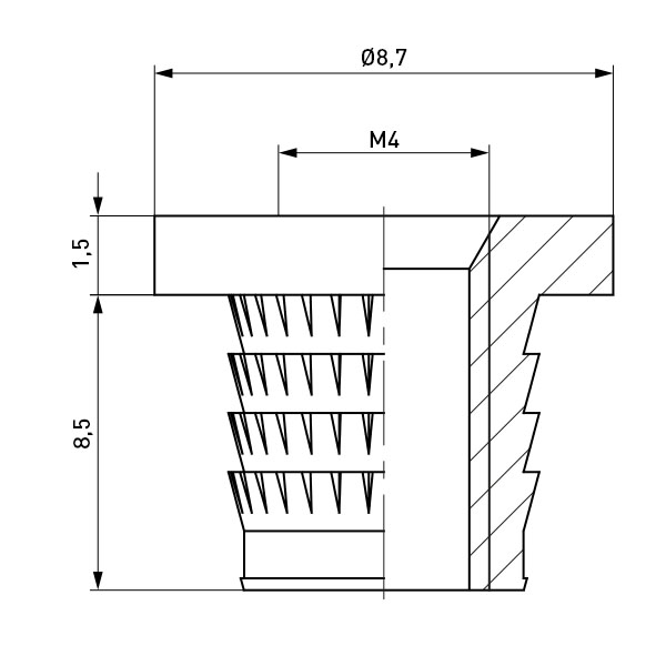 Gewindeeinsatz M4 | 8,5 Messing blank