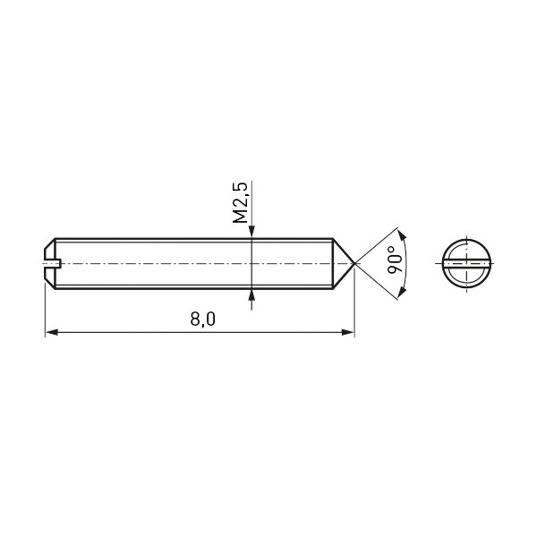 Gewindestift ISO7434 M2,5x8 ST 4.8 verzinkt Schlitz Spitze