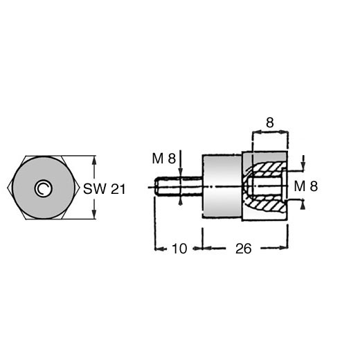 Isolierstütze Alkydharz-Stahl I/A SW21x26 I=M8x8 A=M8x10