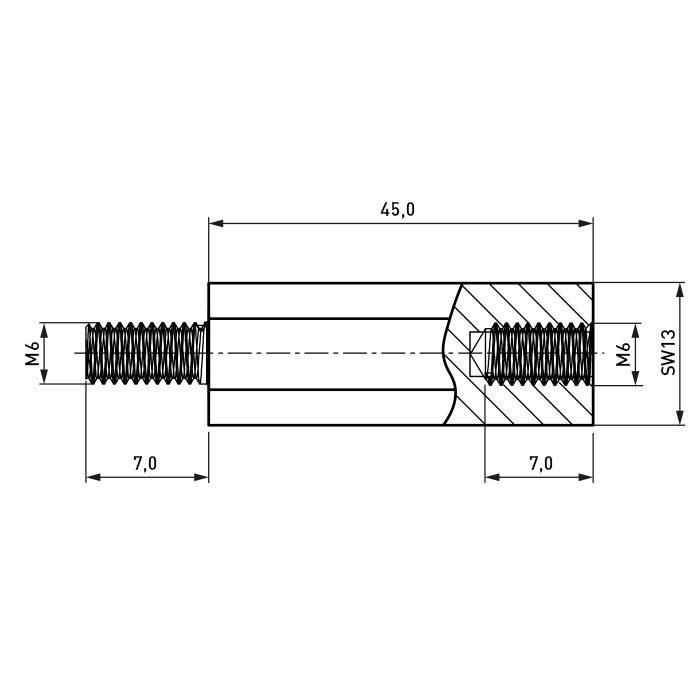 Isolierstütze PA-Stahl I/A SW13x45 I=M6x7 A=M6x7