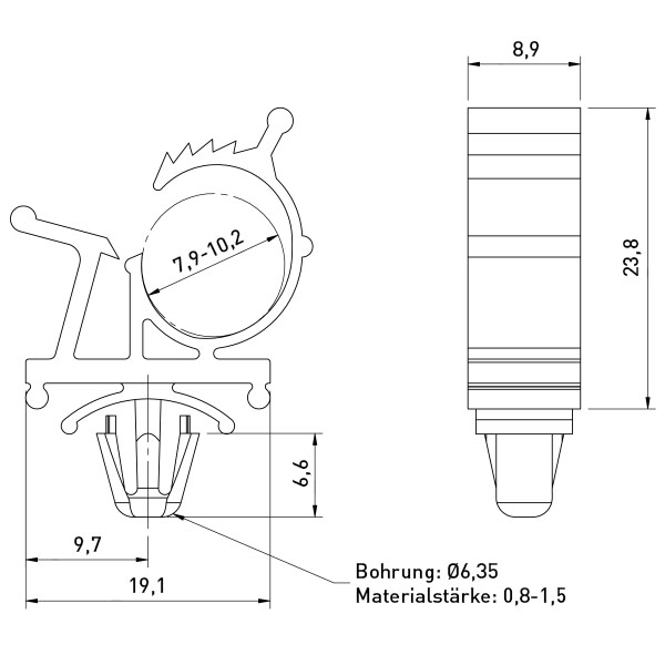 Kabel-Rohrhalter Type PAKKL für Klemmbereich 7,9-10,2mm