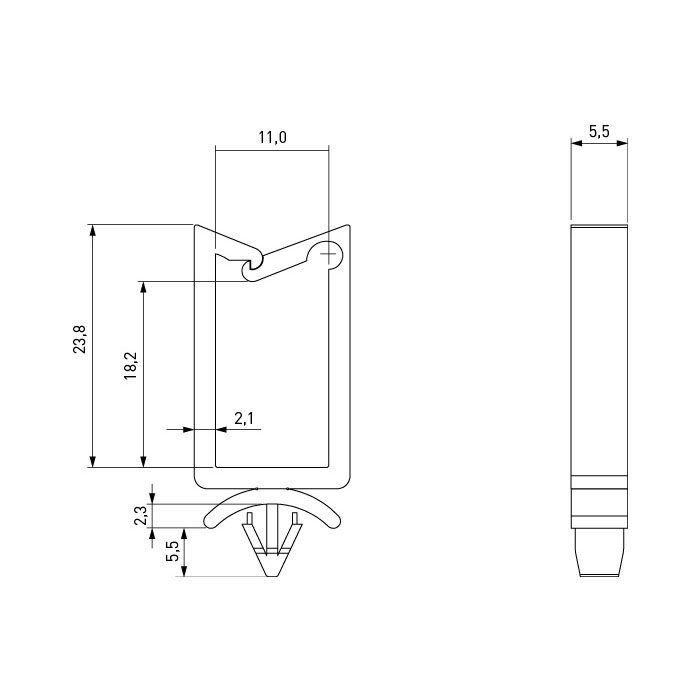 Kabelhalter 11,0 x 18,2 mm / mit Steckfuss, Einführung oben
