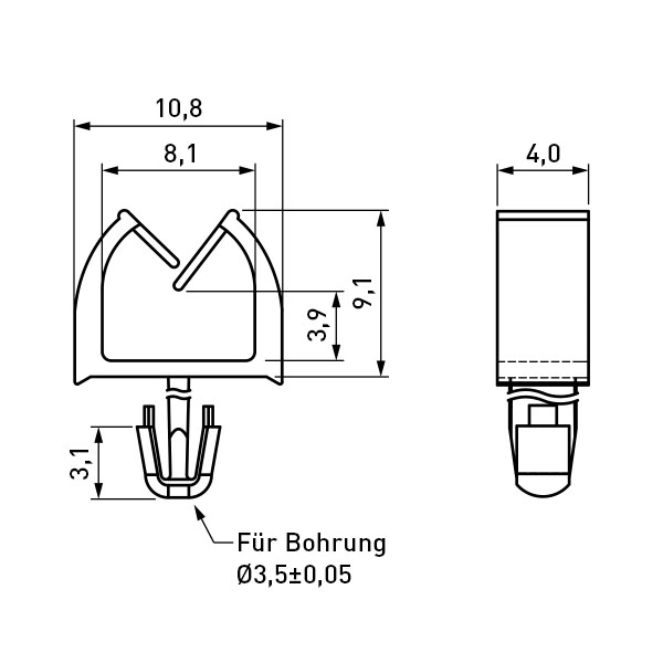 Kabelhalter 3,9x8,1mm 45° mit Steckfuss für Bohrung ø3,5mm