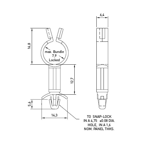 Kabelhalter ø7,9mm/12,7mm mit Steckfuss für ø4,8mm/1,6mm