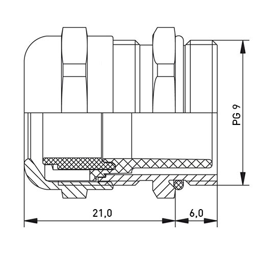 Kabelverschraubung PG9 Edelstahl mit O-Ring am Anschlussgewinde