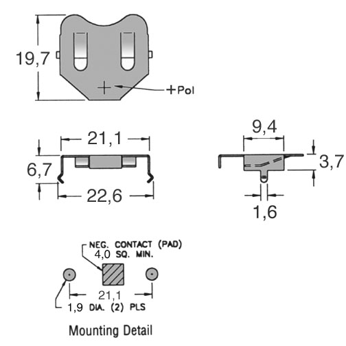 Knopfzellen Halter für ø20mm Zellen LP-Durchsteckmontage ø1.9mm Artikelfoto (PNG) 94.9 KB