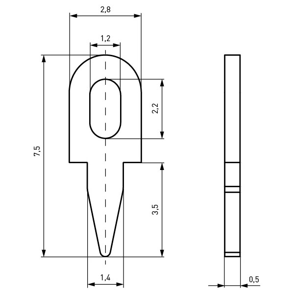 Lötstift flach 2,8x7,5 Bronze verzinnt Magazin à 320 Stück