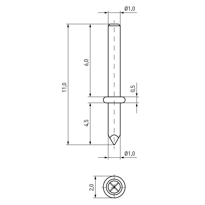 Lötstift rund Ø1,0x11,0 Messing versilbert | Einpressschaft rund