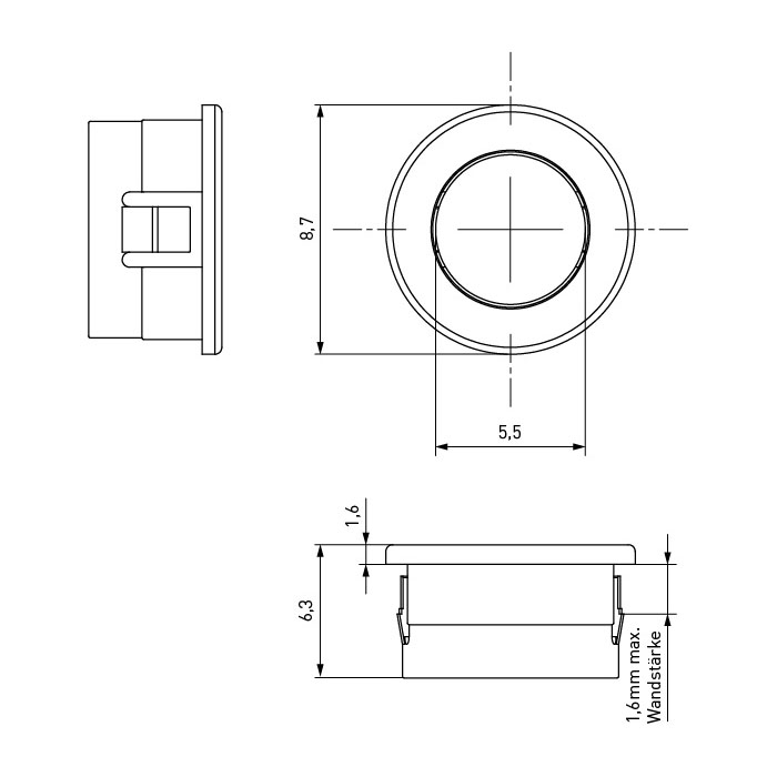 Miniatur - Durchführungstülle / mit geringer Einbautiefe
