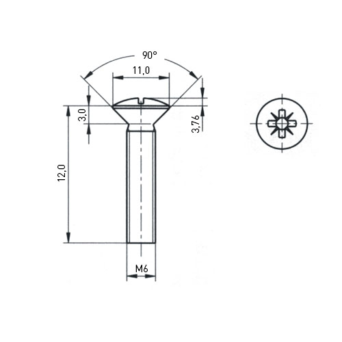 Senkkopfschraube ISO7047 M6x12 Stahl 4.8 verzinkt Pozidriv