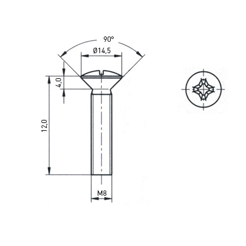 Senkkopfschraube ISO7047 M8x12 Stahl rostfrei A2 blank Phillips