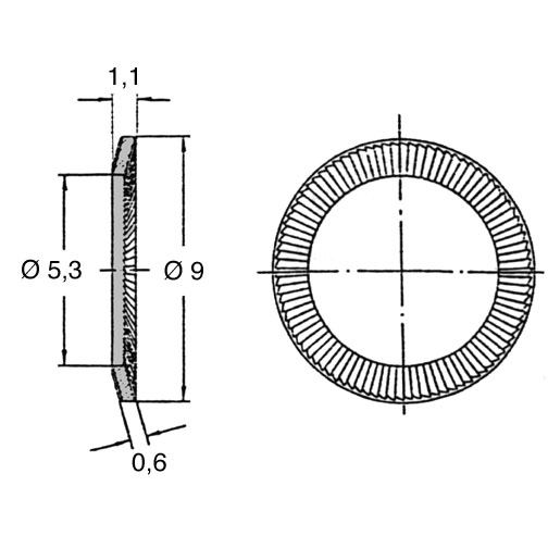 Sicherungsscheibe Ø5,3/9,0 x 0,6 Federstahl verzinkt Technische Skizze (JPG) 46.9 KB