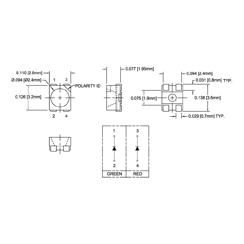 SMD-LED Dual Chip rot/grün PLCC4 Linse glasklar,Blickwinkel 120° Technische Skizze (JPG) 66.2 KB