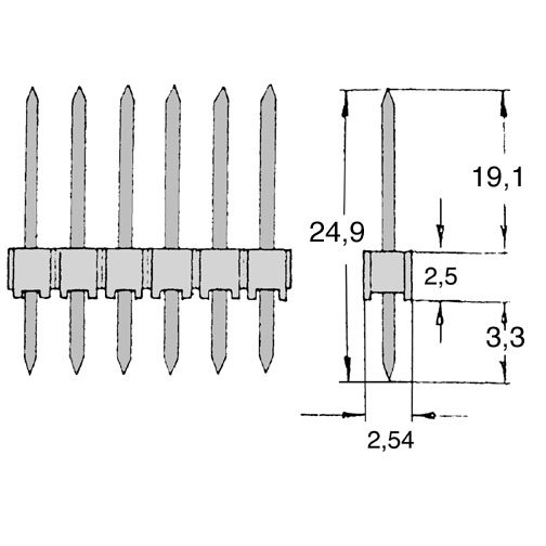 Stiftleiste 1x 20 polig/24,9mm Isolierkörper 2,5mm