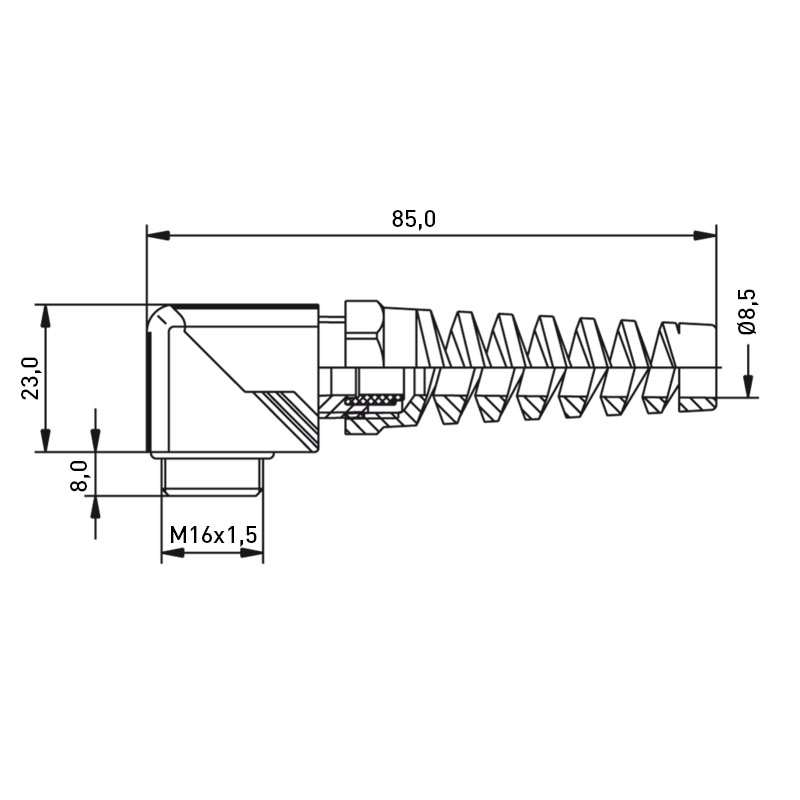 Winkel-Verschraubung M16x1,5 mit Knickschutzspirale