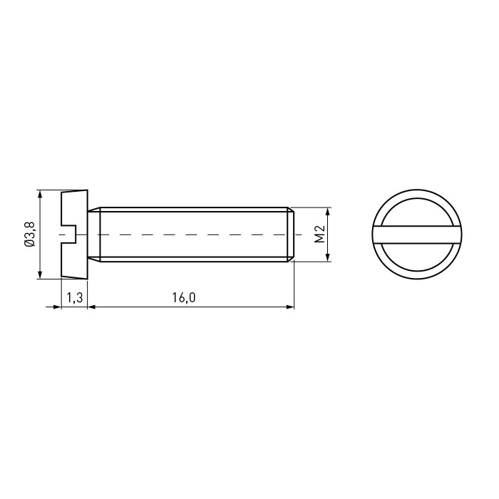 Zylinderkopfschraube ISO1207 M2x16 PA6.6 natur Schlitz