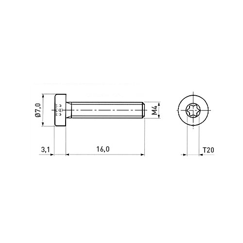 Zylinderkopfschraube ISO14580 M4x16 Stahl 8.8 verzinkt Torx