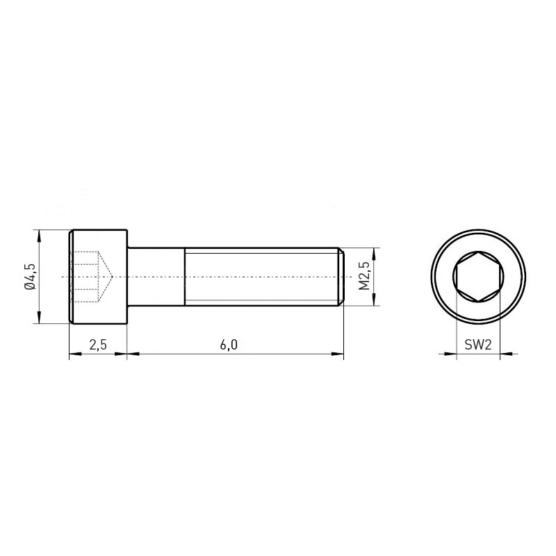 Zylinderkopfschraube ISO4762 M2,5x6 Stahl rostfrei A2 blank Innensechskant